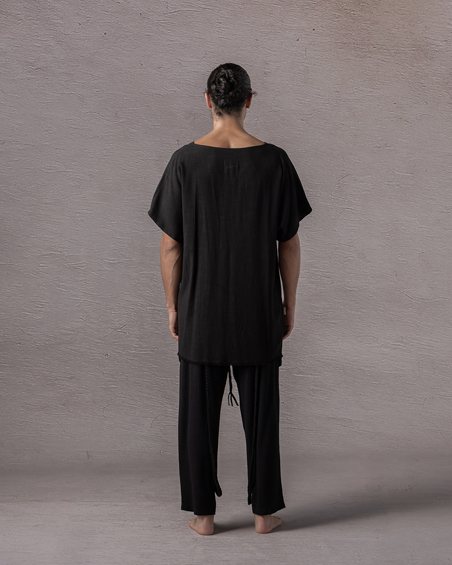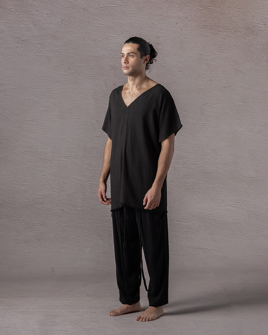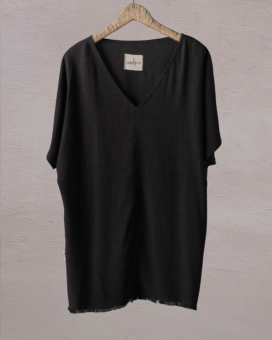 Vneck loosefitted Tshirt with an abdominal slit