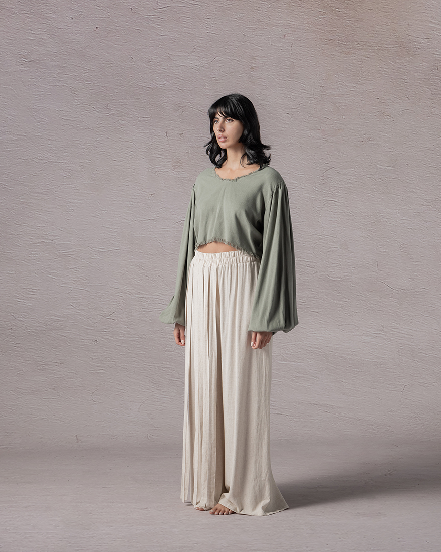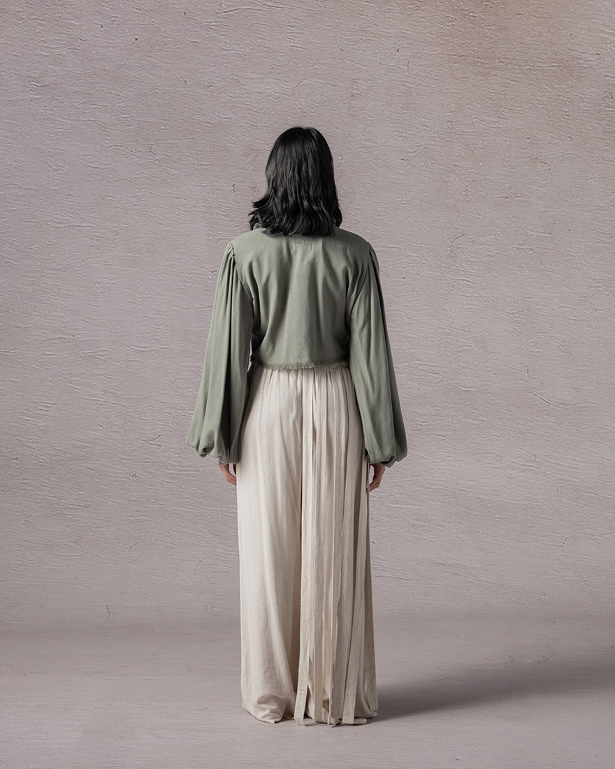 Falls is a pant that doesn't walk, it cascades. Cut with intention and asymmetry, it holds its weight in one place and lets go in another. Fringes pour down one side like a quiet waterfall, soft and steady, always in motion. It's not about symmetry. It's about rhythm, about letting fabric move the way feeling does. Falls speaks in texture, dances in stillness, and reminds you that not everything grounded has to be still. Sometimes, the most powerful statement is how softly something land.
