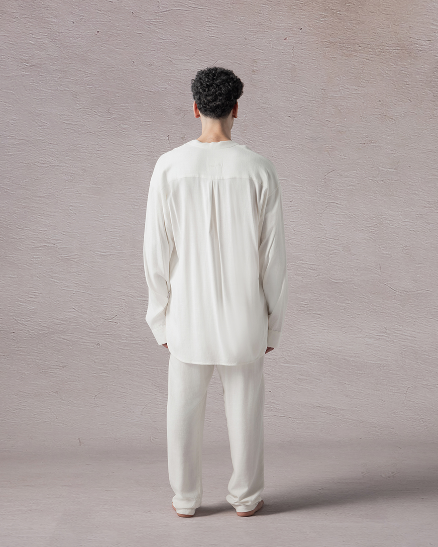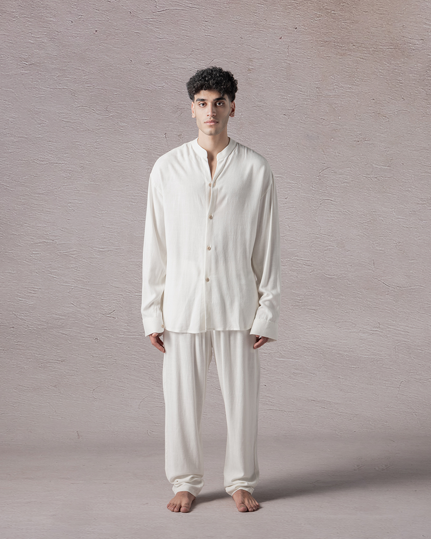 Nothing extra, nothing loud. Just a straight cut that falls quietly, following the body without clinging to it. The fabric moves with calm, the kind that doesn't need attention to be felt. Gentle is exactly that, simple, steady, and kind to the skin. A piece that leaves space for everything else.