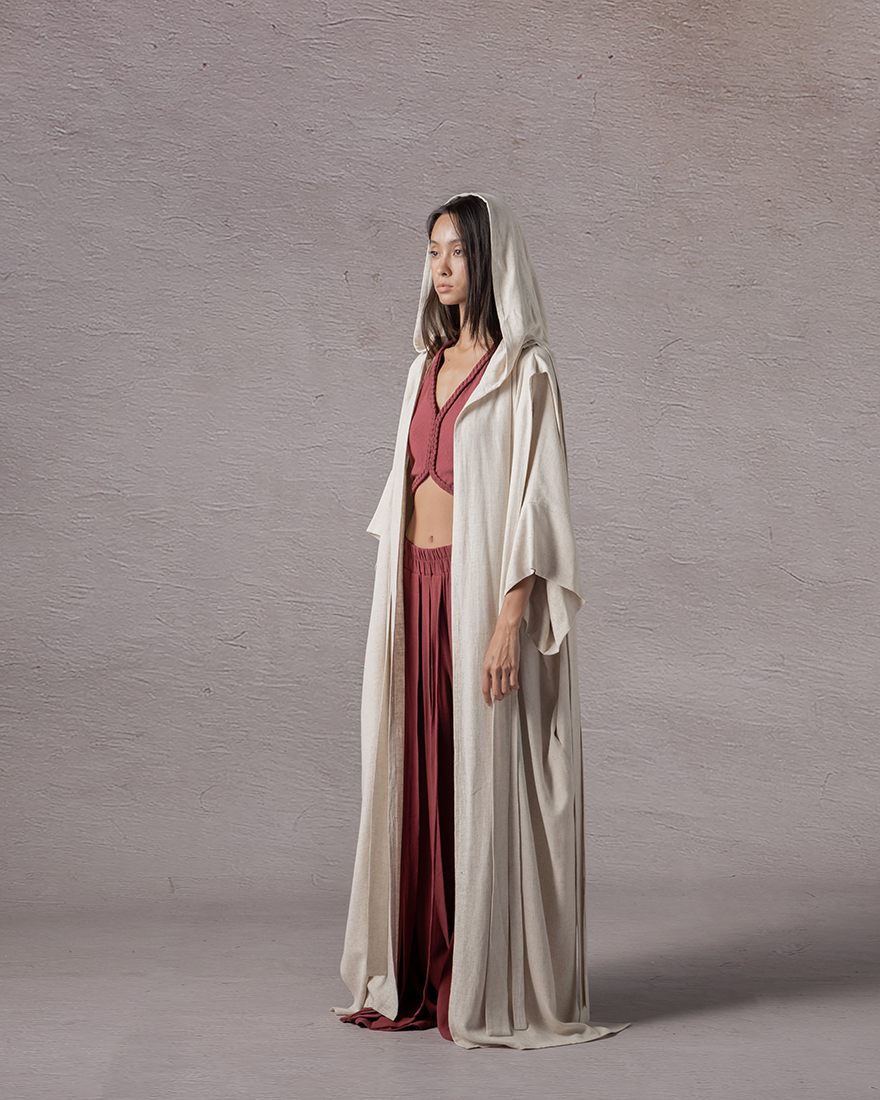 Commanding yet effortlessly fluid, the Hurricane cloak is a statement of movement and mystery. It flows with every step, embodying both presence and ease. The oversized hood and relaxed shoulders add an air of intrigue. Designed for those who embrace the elements with quiet strength, this piece is as bold as it is timeless.