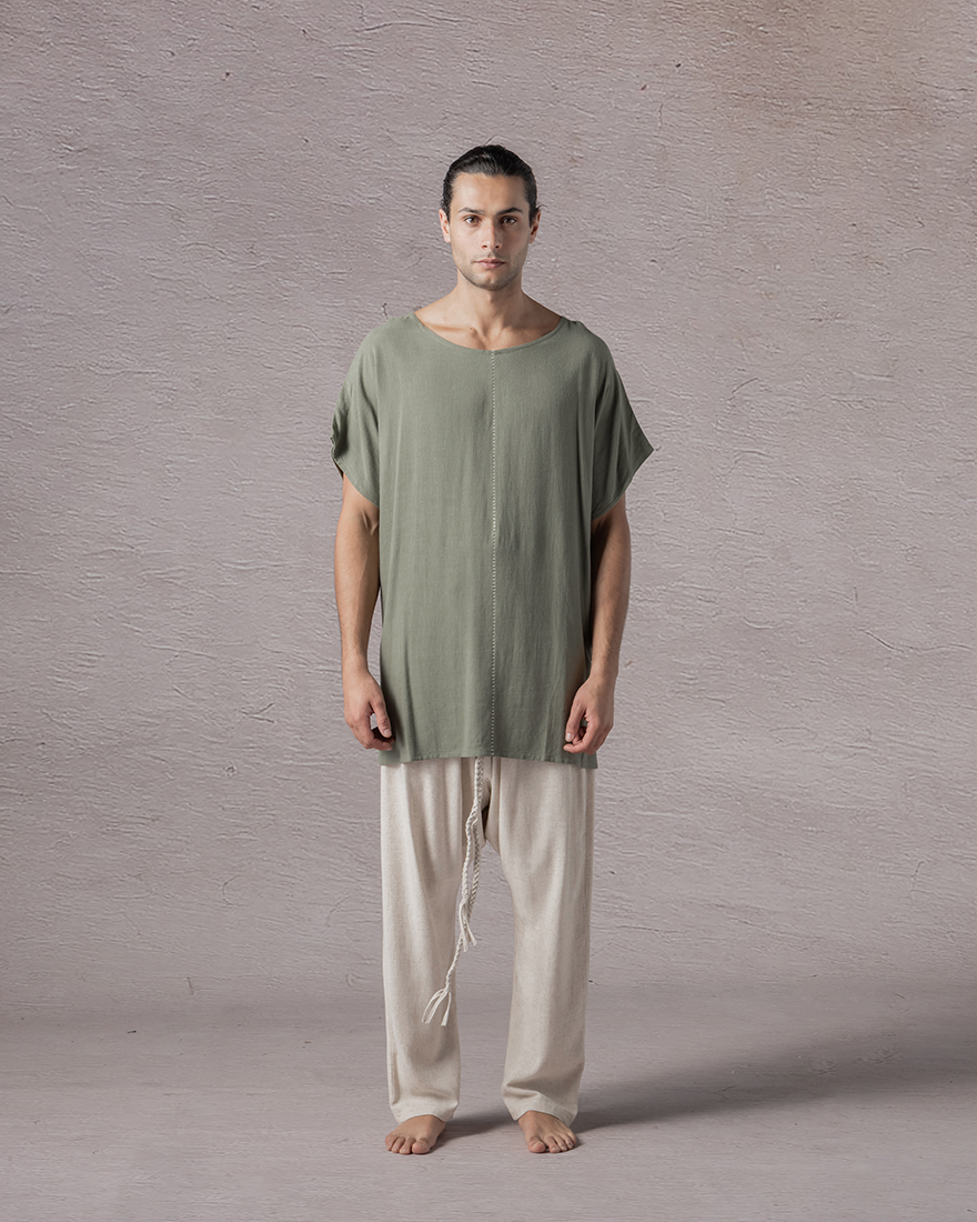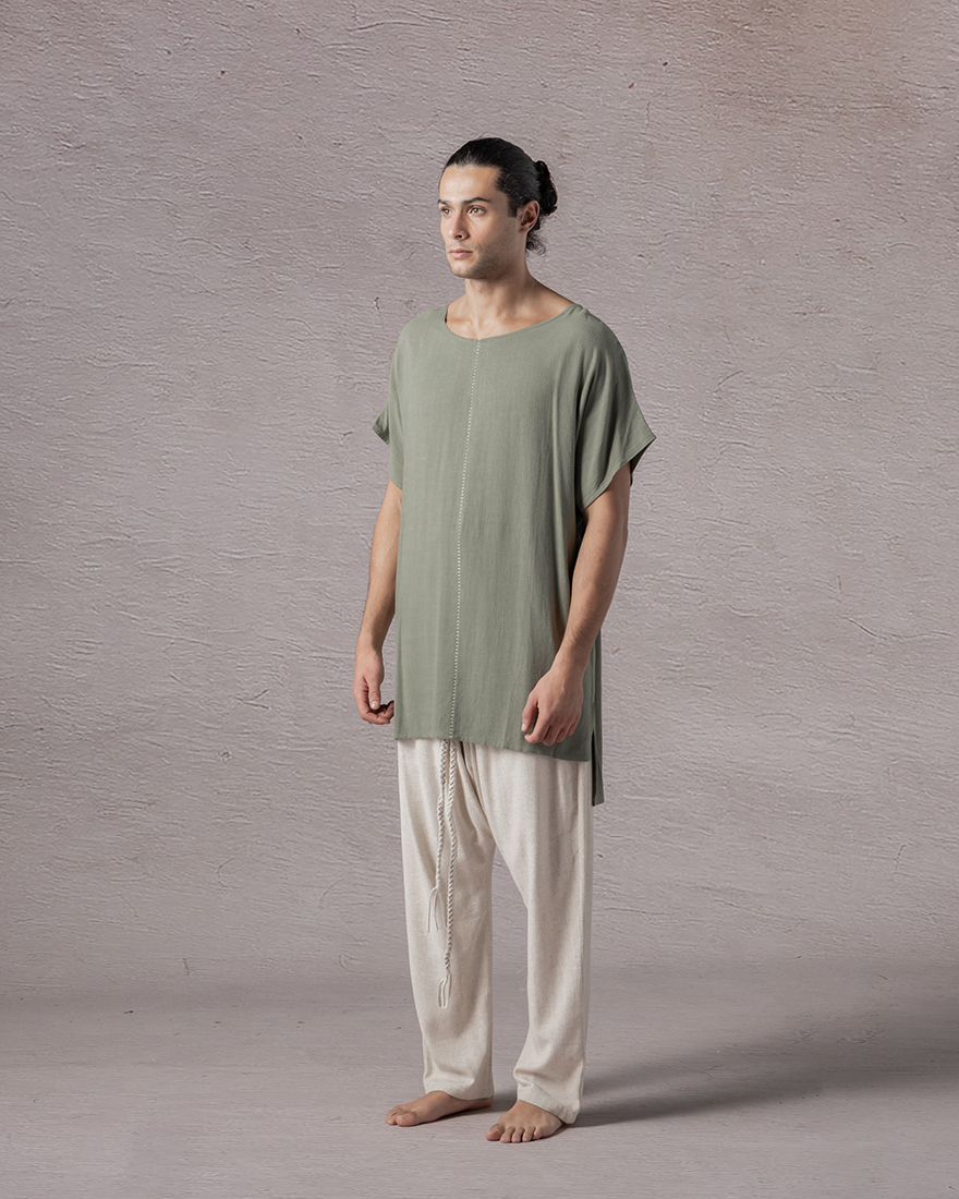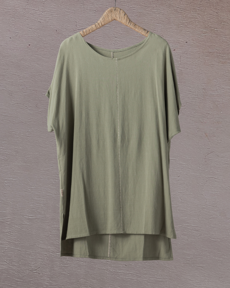 Boat neck shirt with stitched centerline