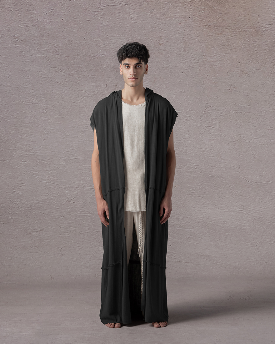 Hooded, sleeveless Abaya with 1 pocket on each sid