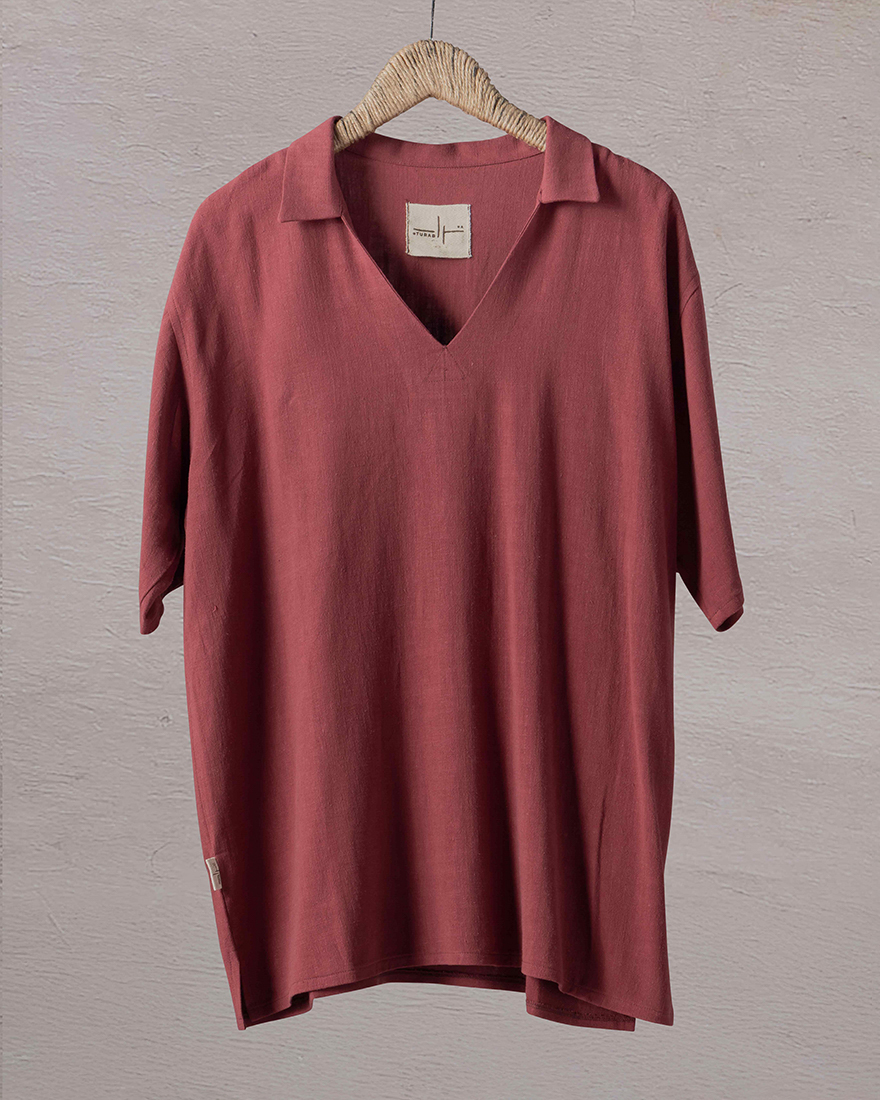 Short sleeved simple V necked polo shirt